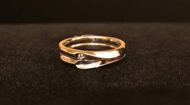 ふたりであわせるとハートの形ができあがるペアリング